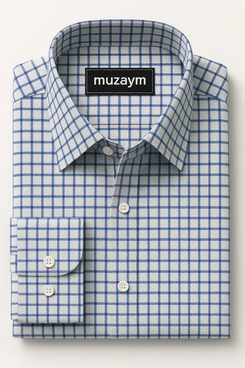 Timeless checks, modern silhouette — our Royal Blue Grid Check Smart Fit Shirt.